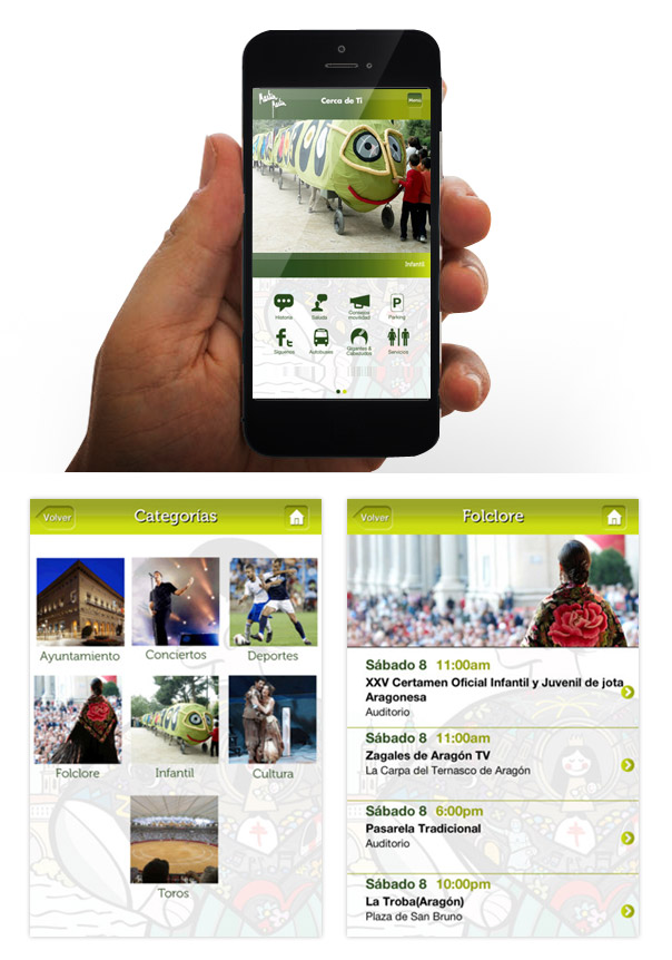 Esta aplicación ofrece a los usuarios el Programa de Fiestas del Pilar de una manera atractiva, fluida y fácil. Además el usuario siempre está informado de donde se producen los eventos y la ruta para llegar pudiendo incluso crear su propia agenda de eventos que le avisa con la antelación definida por el usuario.