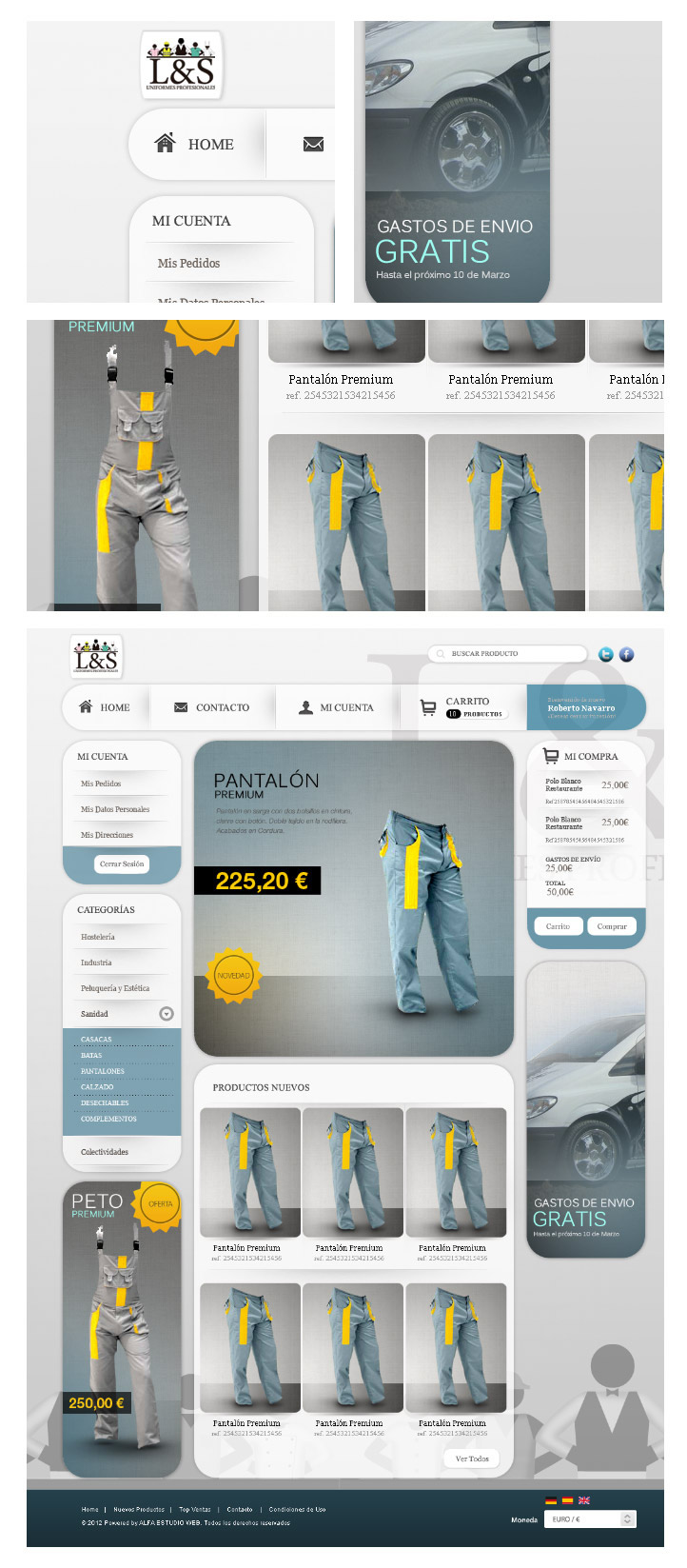 La joven empresa madrileña L&S Uniformes Profesionales necesitaba mostrar sus productos a sus actuales clientes y además de ofrecer la posibilidad de realizar pedidos directos que son tramitados a través de Servired además de Paypal y pago por transferencia bancaria.