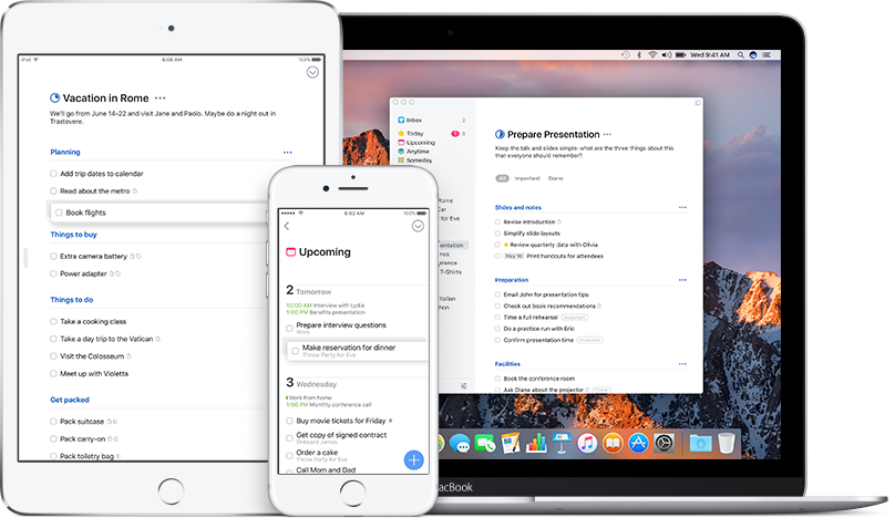 Esta app es el administrador de tareas definitivo, exclusivo para iPhone, iPad, Apple Watch y Mac. Es un placer utilizarla gracias a que ha sido completamente rediseñada para mejorar la eficiencia. Su trabajado diseño y sus potentes características te ayudarán a organizarte y sacar el máximo partido a tu tiempo cada día. Desarollado por un equipo de diez personas en Cultured Code, una compañía apasionada por la productividad, sencillez, y los diseños atractivos, Things 3 elimina elementos innecesarios y ofrece interacciones y gestos innovadores para simplificar la edición y reorganización de listados, selección múltiple, sincronización de listas en varios dispositivos, planificación rápida, distribución de fechas, búsqueda, recordatorios y mucho más. Things 3 está totalmente integrada en iOS, macOS y watchOS, aprovechando su tecnología Core Animation para presentar unas atractivas y delicadas animaciones. Además, se integra con Calendario y Recordatorios, y soporta Share Extensions, Rich Notifications, Slide Over y Split View, 3D Touch y Quick Actions, Handoff, Haptic Feedback, problemas con Apple Watch, y soporte TouchBar en Mac. Things 3 marca el camino a seguir para el diseño de aplicaciones óptimas para todos los dispositivos.