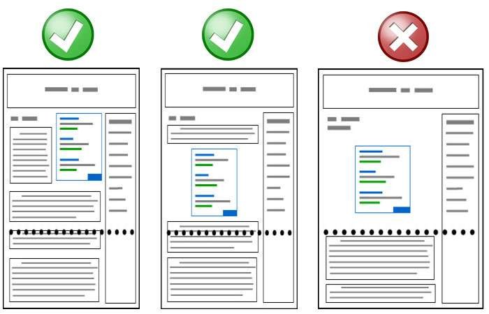 1. Asegúrate de que el contenido sea claro y directo – El contenido debe estar en la parte delantera y en el centro de cualquier página web. Como mínimo el título de la página debe estar “por encima del doblez “; que sea visible sin que el visitante tenga que desplazarse. 2. Evitar demasiados anuncios por “encima del doblez” – Mientras que la publicidad es un modelo de ingresos fundamental para muchos sitios web, demasiados anuncios en la mitad superior pueden tener un impacto negativo en el ranking de búsqueda. Asegúrate de que cualquier anuncio publicitario sea no intrusivo y claramente distinguible del contenido.