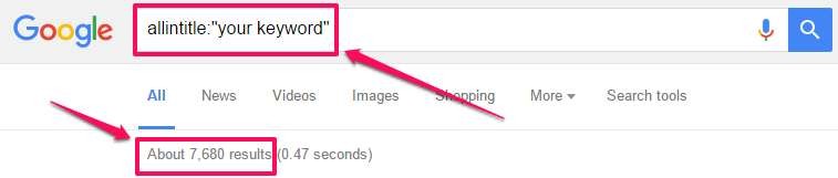 12. Elije las palabras clave sabiamente – la investigación sobre el uso de palabras clave sigue siendo una parte importante del SEO. El uso del planificador de palabras clave de Google, o herramientas avanzadas tales como Long tail Pro, para evaluar los volúmenes de búsqueda y así seleccionar las palabras clave que desees clasificar. 13. Selecciona una palabra clave principal por página – Cada página de tu sitio debe dirigirse a una palabra clave. Evita el aprovechamiento de palabras clave (es decir, evita dirigirte a la misma palabra clave en varias páginas). 14. Considera la intención del usuario – Aunque una palabra clave puede tener un buen volumen, tienes que tener en cuenta la intención detrás de la búsqueda y si alguien en busca de esa frase es probable que esté interesado en tu producto / servicio. 15. Comprueba la competencia del título – Realiza una búsqueda en Google de allintitle: «tu palabra clave» para saber el número de páginas web que actualmente contienen la palabra clave que estás buscando en el título.