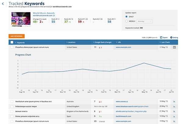 17. Roba palabras clave a tu competidor – averigua exactamente qué palabras clave están llevando el tráfico de búsqueda a tus competidores usando Ahrefs Positions Explorer. 18. Realiza un seguimiento de tus clasificaciones – Controla el progreso de la clasificación de tu sitio web en los resultados de búsqueda de palabras clave. Con Ahrefs Rank Tracker puedes ver los datos históricos para realizar un seguimiento del progreso con el paso del tiempo.