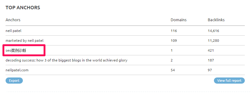 Aparte de los textos de anclaje resaltados en la imagen de arriba (que parecen spam), otros textos de anclaje pueden ser de marca y naturales. No creo que Google vaya a penalizar la página a causa de un solo enlace de anclaje spam. No pierdas de vista el propósito detrás de tu auditoría de SEO local. Es para ayudarte a descubrir errores en tu página (tanto dentro de la página como fuera de la página) para que puedas volver a optimizarlo y llevar más tráfico orgánico a tu blog o a tus páginas.