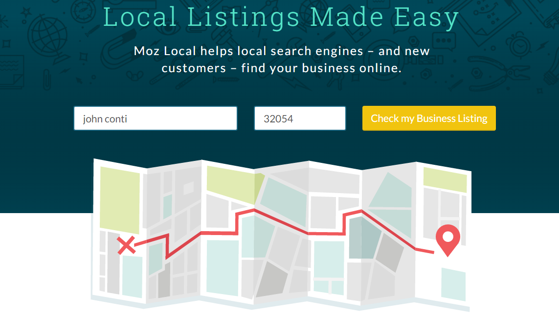 Puedes utilizar fácilmente la herramienta Moz local para encontrar un negocio local en particular, así como oportunidades para mejorar una lista en particular.