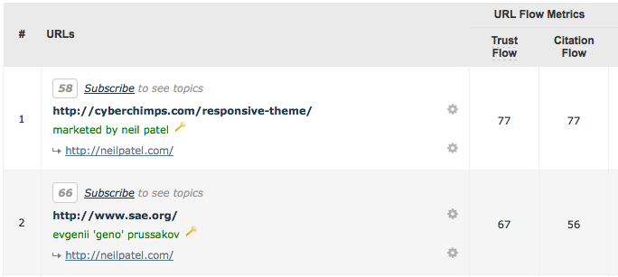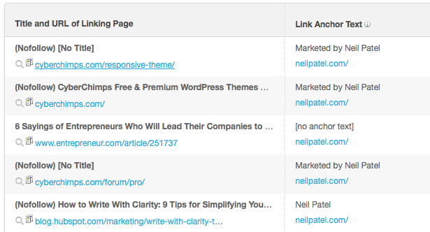 Esta parte de los resultados muestra la autoridad del dominio, la autoridad de la página, las métricas de enlace de la página, y lo más importante, el número de enlaces establecidos. Bajando por la página de resultados, esto es lo que verás a continuación: